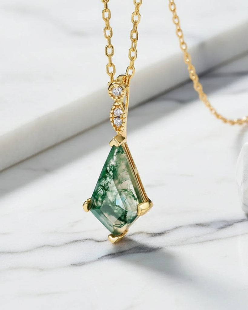 Pear Cut Moss Agate Necklace – 925 Sterling Silver Healing Pendant