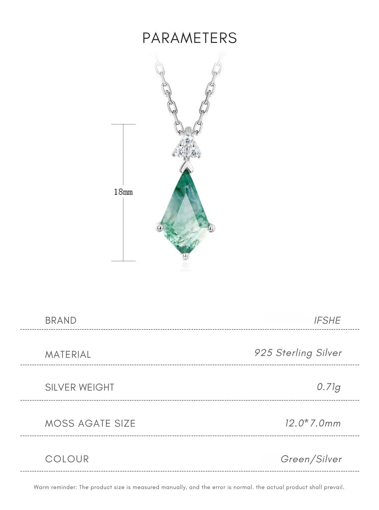 Capture the tranquility of nature with this striking kite-shaped moss agate necklace. Set in luminous 925 sterling silver, the unique green inclusions are complemented by a delicate bail of sparkling zircons. A beautiful, meaningful piece for everyday elegance.