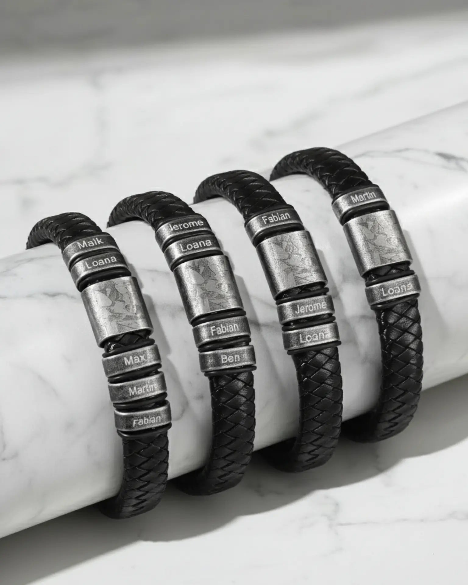 Ready to create the most meaningful piece of jewellery he will ever own? Explore our full range of personalised leather and steel men's bracelets and customize his today.