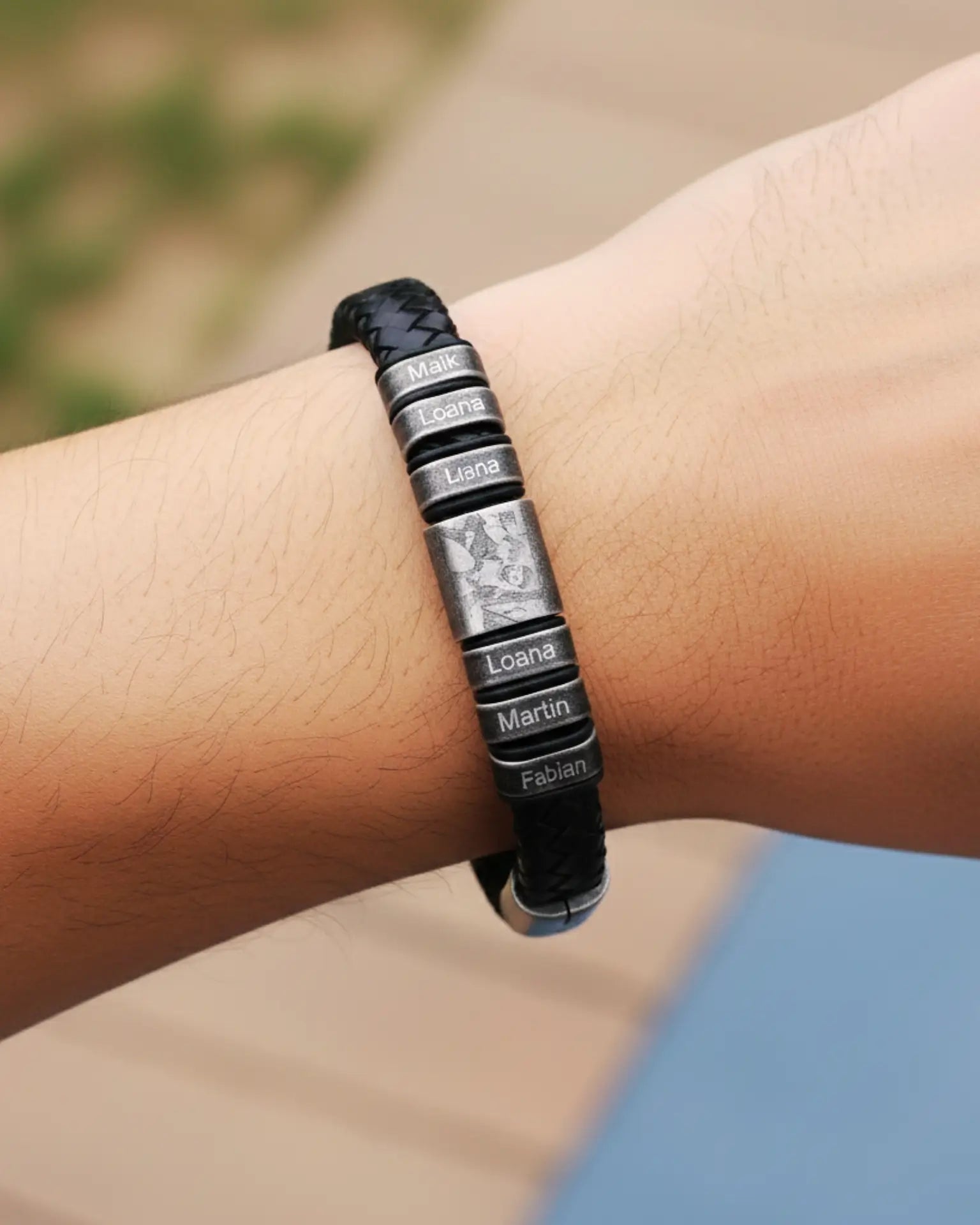 Personalised Multi-Name & Photo Engraved Leather Bracelet