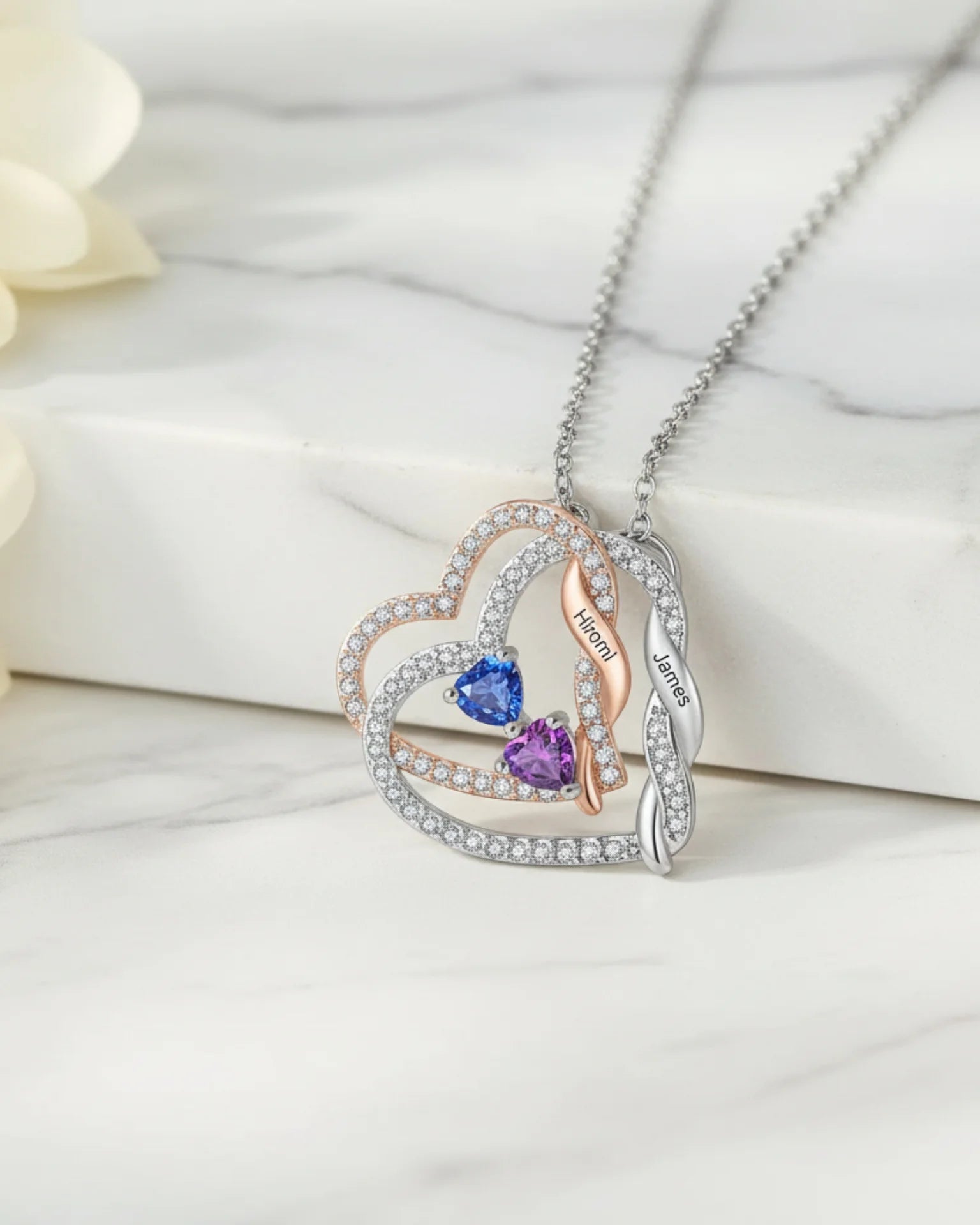 Personalised Intertwined Hearts Necklace with Birthstones & Engraved Names
