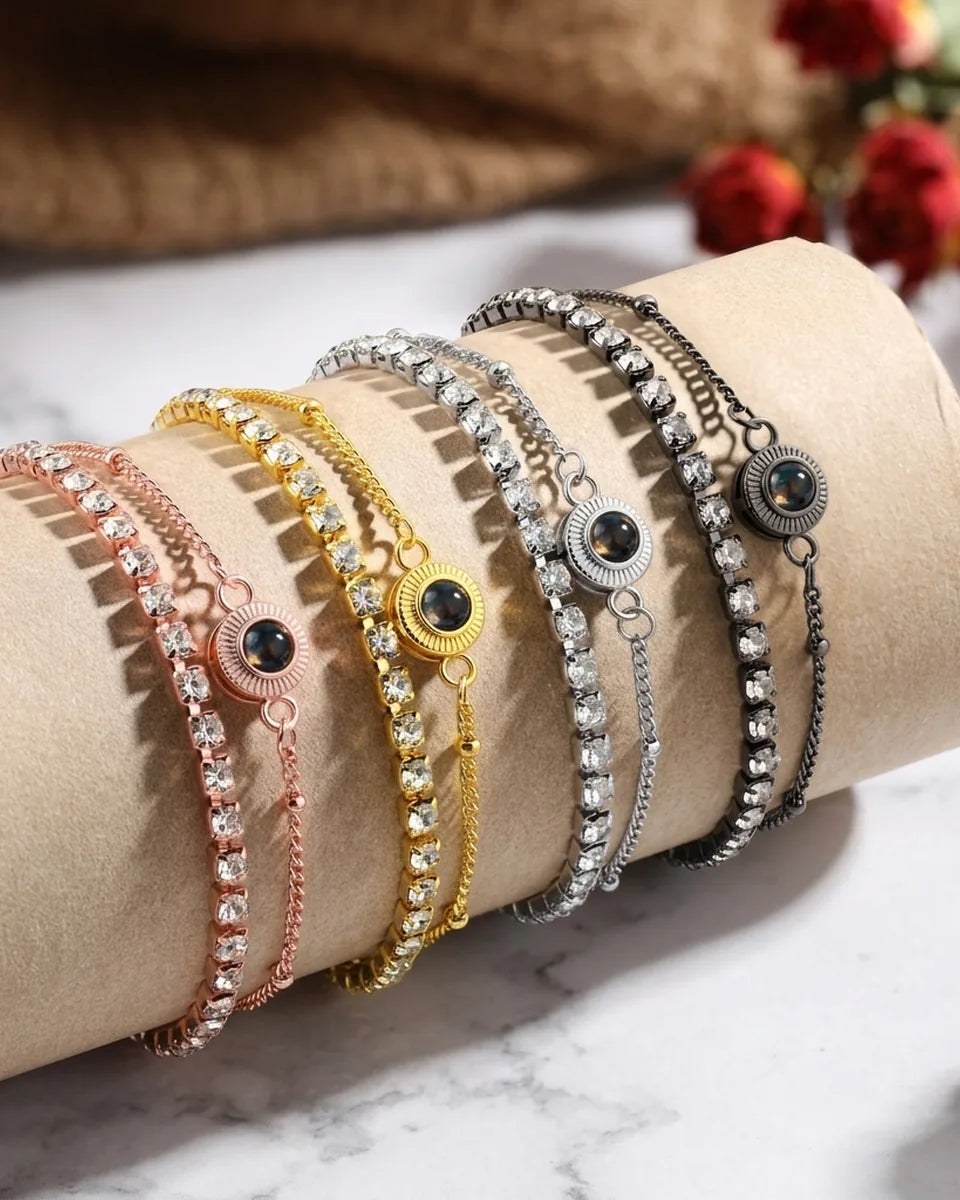 Double Layer Photo Projection Bracelet - Rhodium Plated Zircon