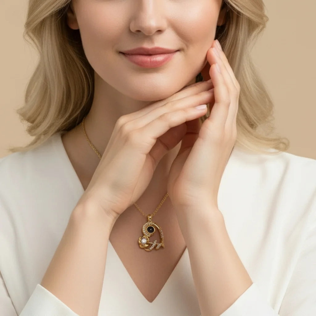 Personalised Heart Rose Photo Projection Necklace with Name Engraving & Birthstone