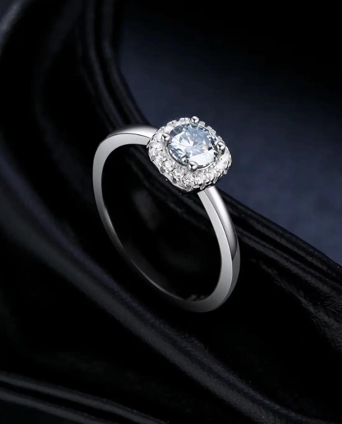 0.5ct Square Halo Moissanite Ring - Sterling Silver Cushion Halo Engagement Ring