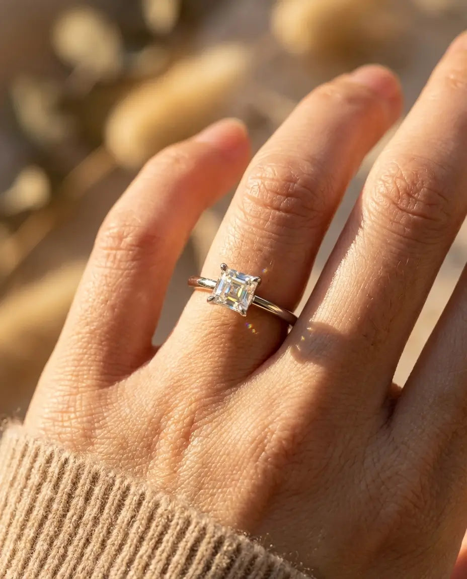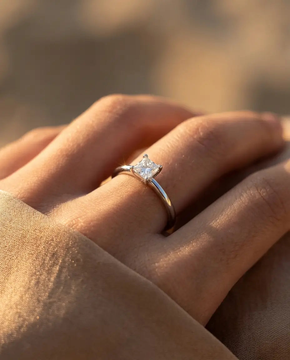 0.35ct Princess Cut Moissanite Ring - Dainty Solitaire Promise Ring in Silver