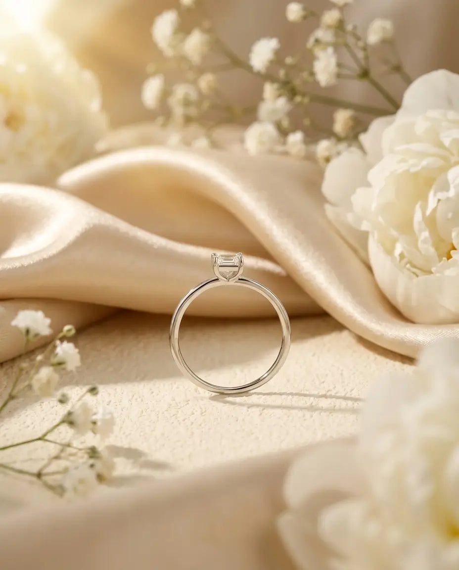 With its ultra-lightweight profile (approx. 1.05g), this ring feels weightless on the finger. It is the ideal "first diamond" look for a promise ring, or a chic addition to a ring stack. Whether you are treating yourself or gifting a loved one, this piece comes with GRA certification. To find more styles that celebrate delicate beauty, please explore our sparkling collection of moissanite engagement rings.