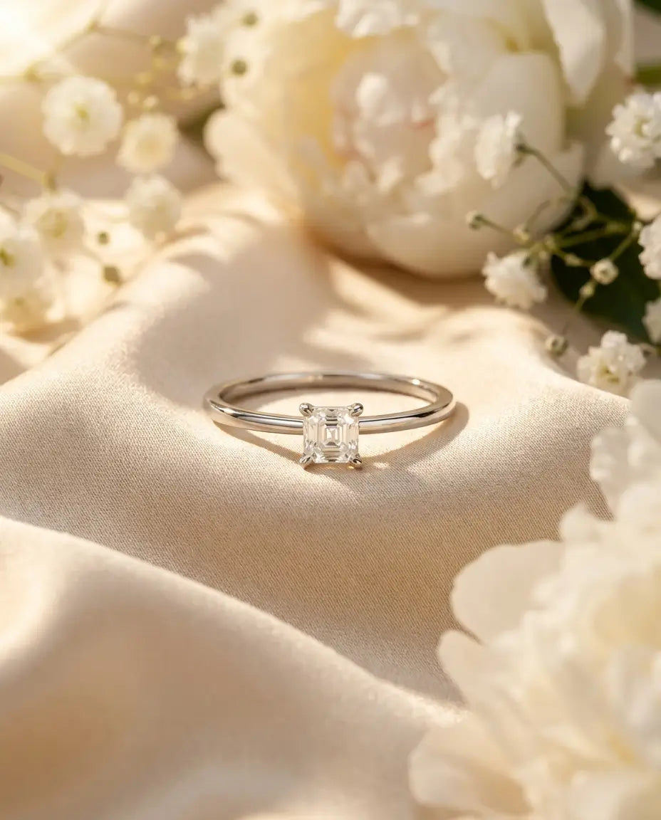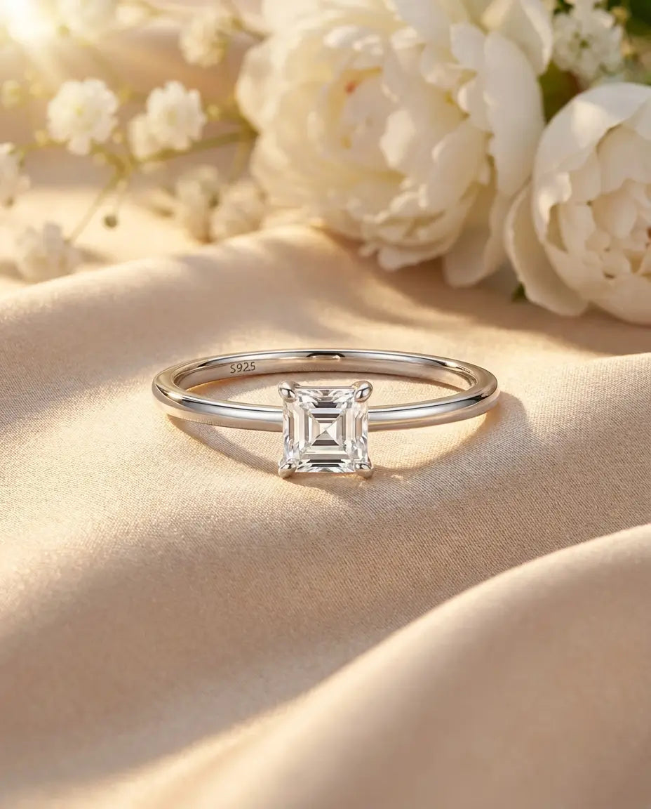 Celebrate the beauty of simplicity with this exquisite 0.35ct Princess Cut Moissanite Ring. Featuring a 4.0mm square princess cut stone, this design captures modern geometric aesthetics with its clean lines and sharp corners. Set on a whisper-thin 925 Sterling Silver band, the "floating" solitaire appearance ensures the gemstone catches the light from every angle, delivering a sparkle that belies its dainty size.