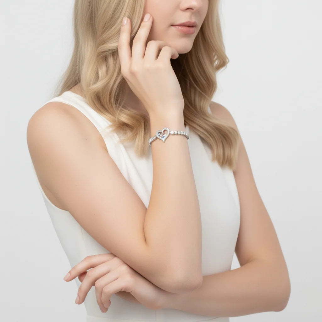 Personalised Heart Name & Birthstone Bracelet for Mum – Adjustable Zircon Tennis Style