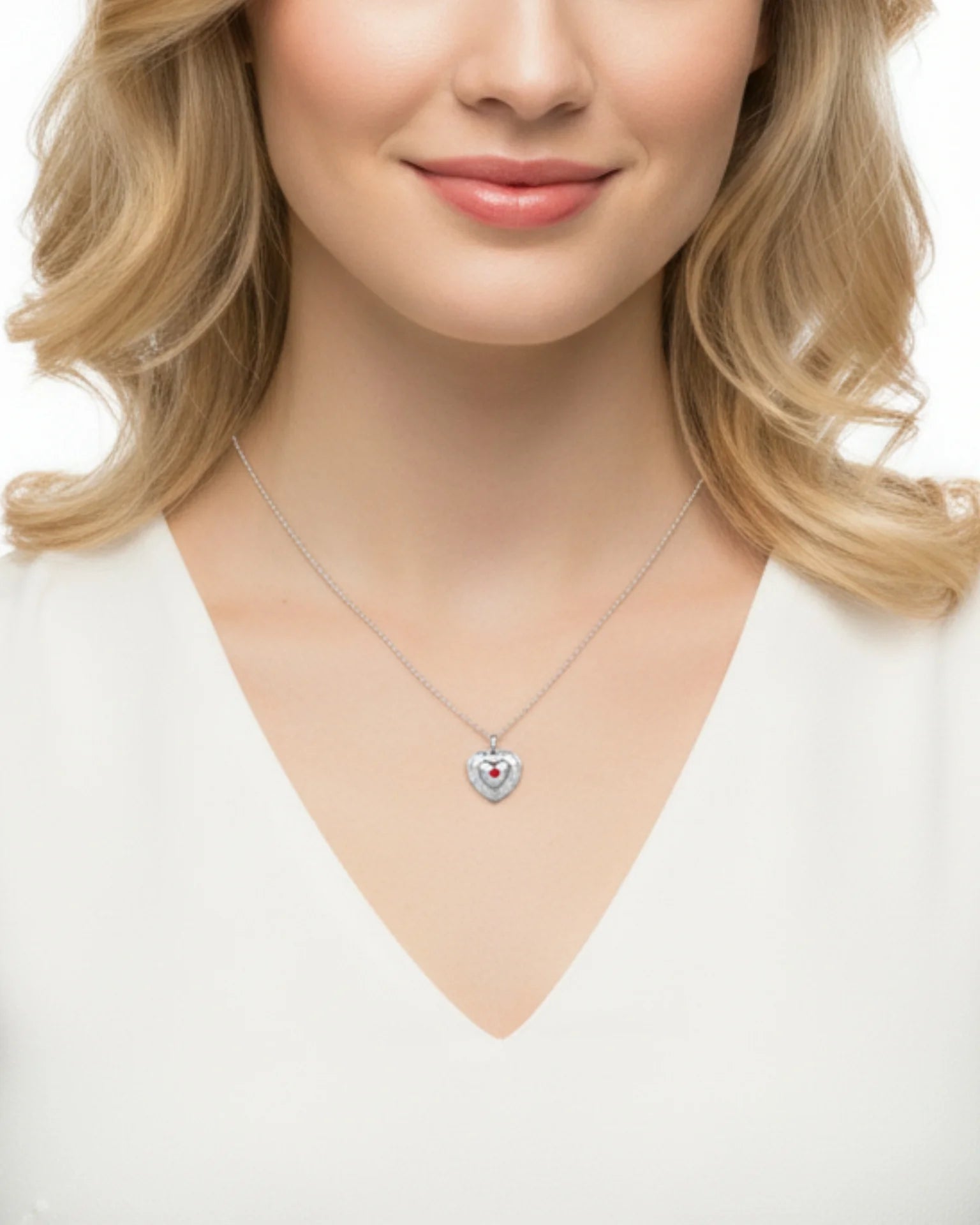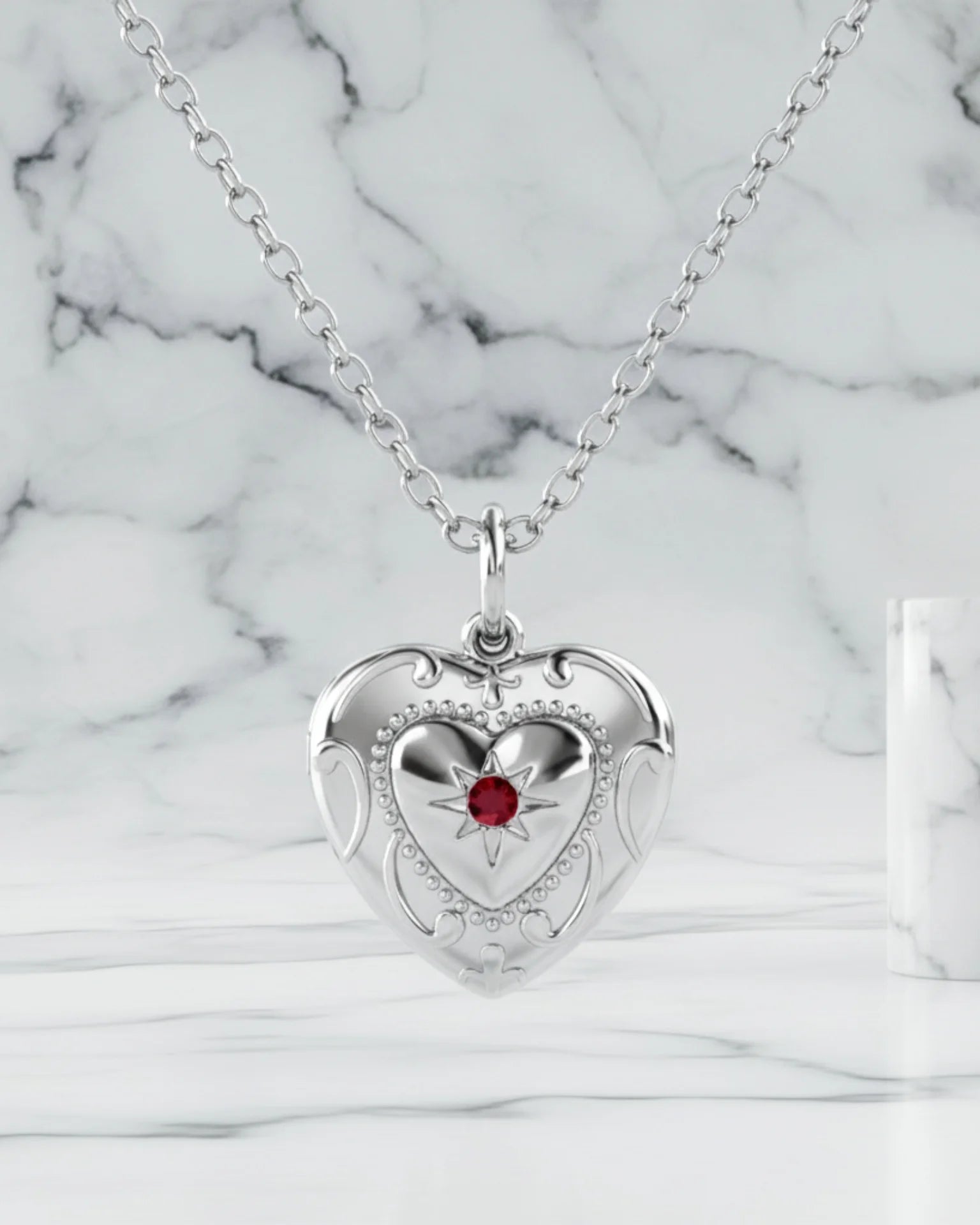 Personalised Photo Heart Locket Necklace with Birthstone & Engraving in 925 Sterling Silver